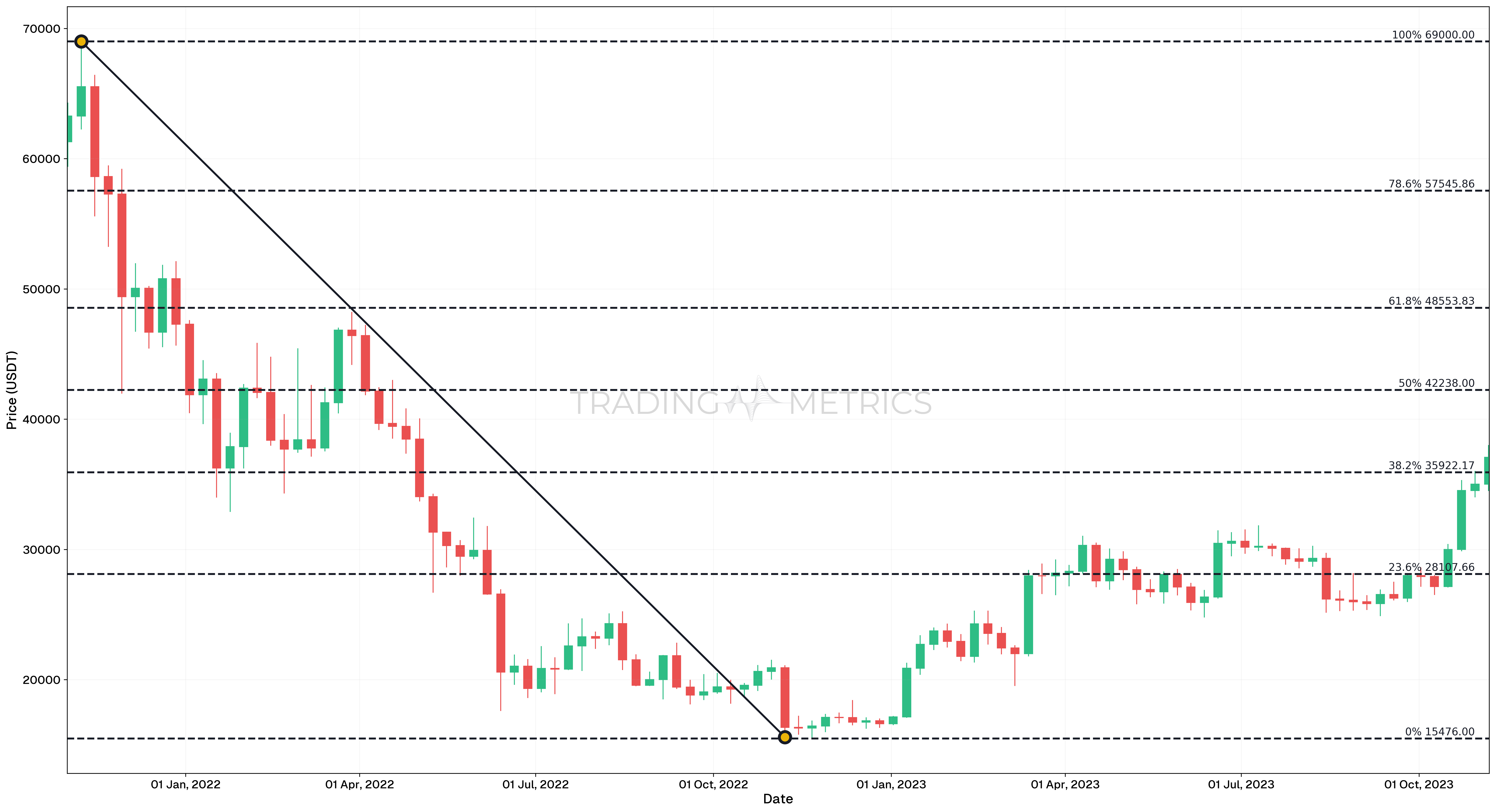 - November 6, 2023: 50% Fibonacci level.