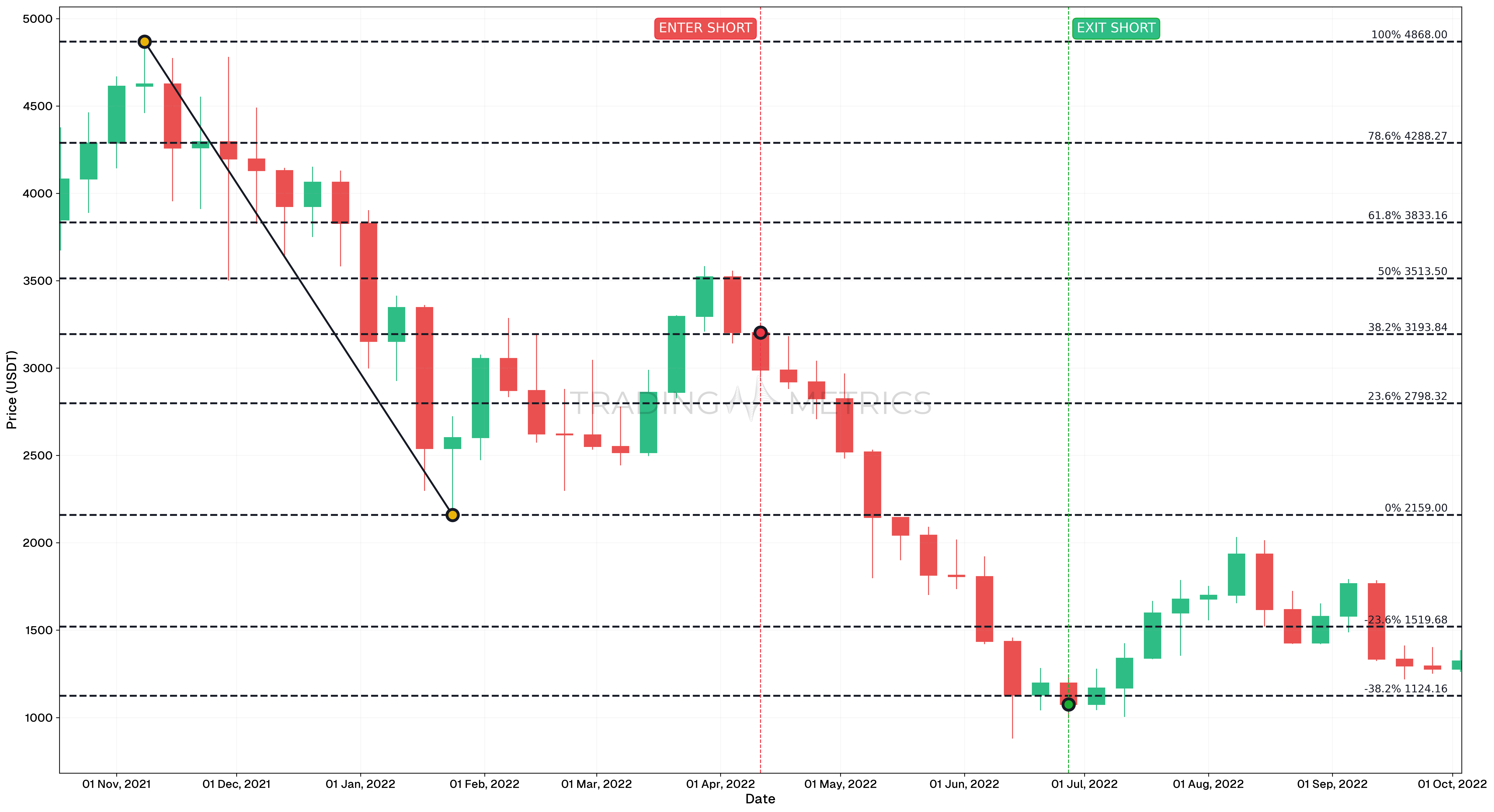 - The ETH/USDT chart from October 18, 2021 to october 3, 2022 highlights a well-executed short trade during a sustained downtrend.