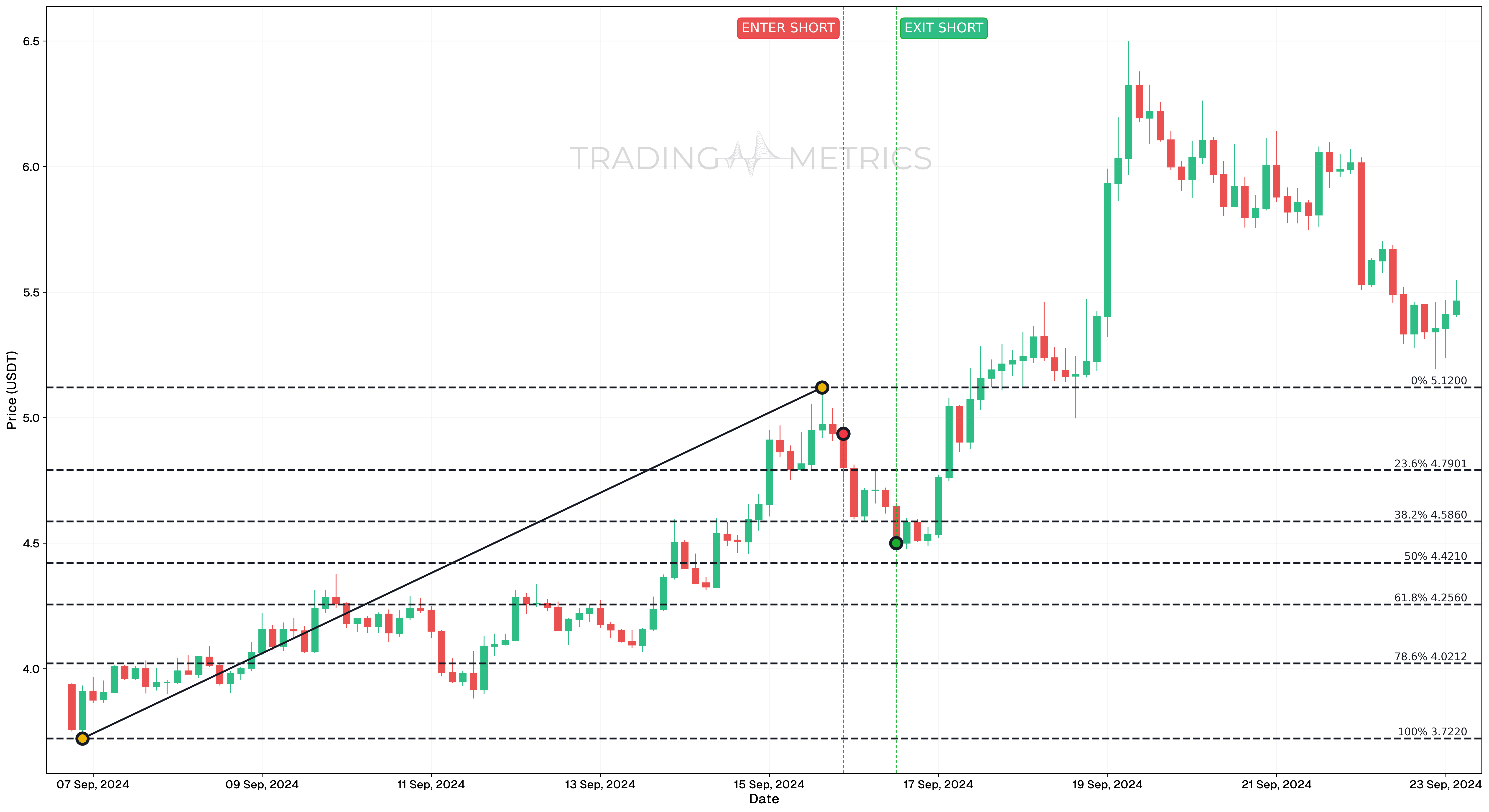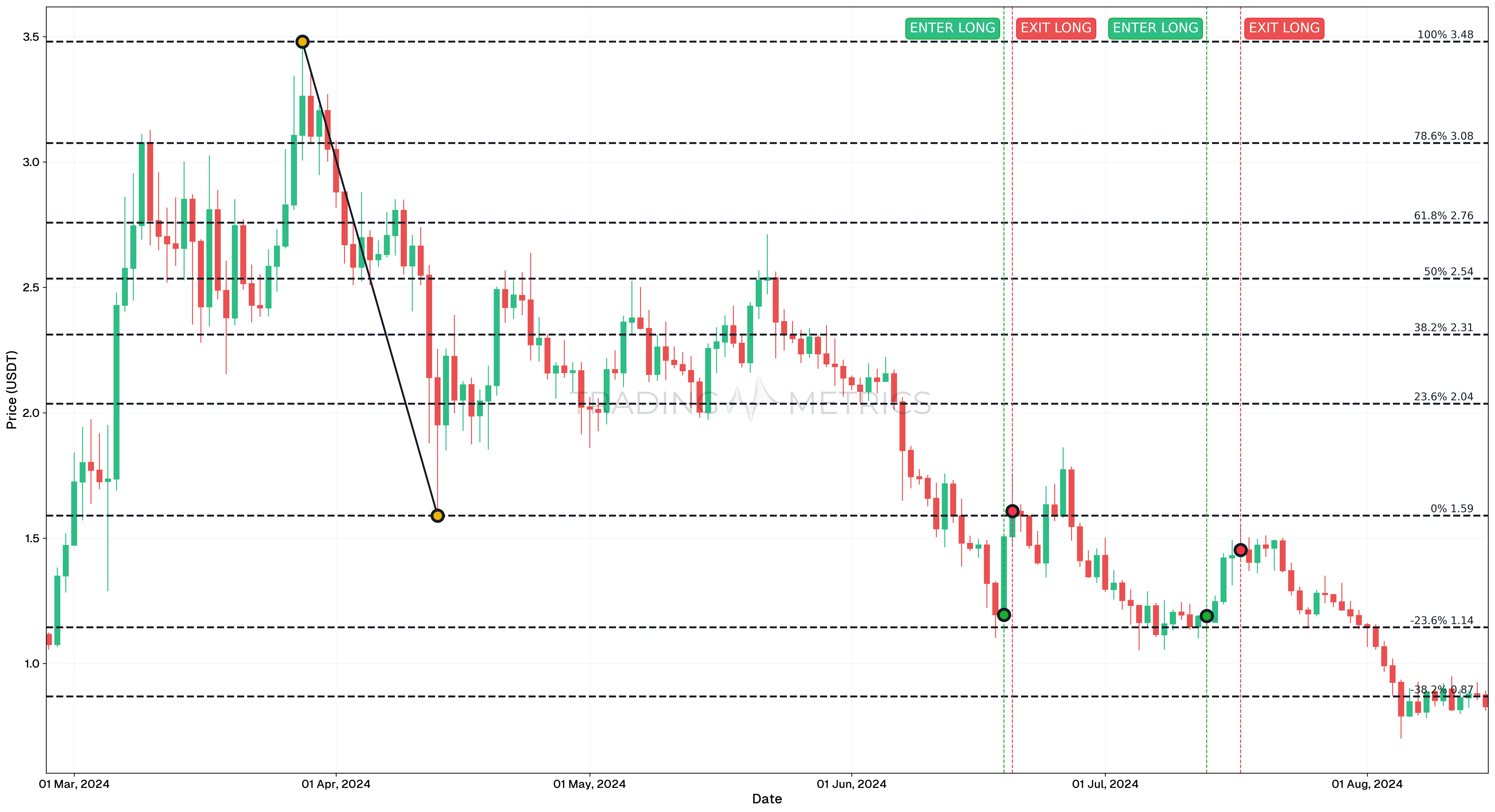 - Outcome: While less profitable than the first trade, this setup reinforced the need to adapt exit strategies based on evolving price action. The -23.6% Fibonacci level remained a reliable entry zone.