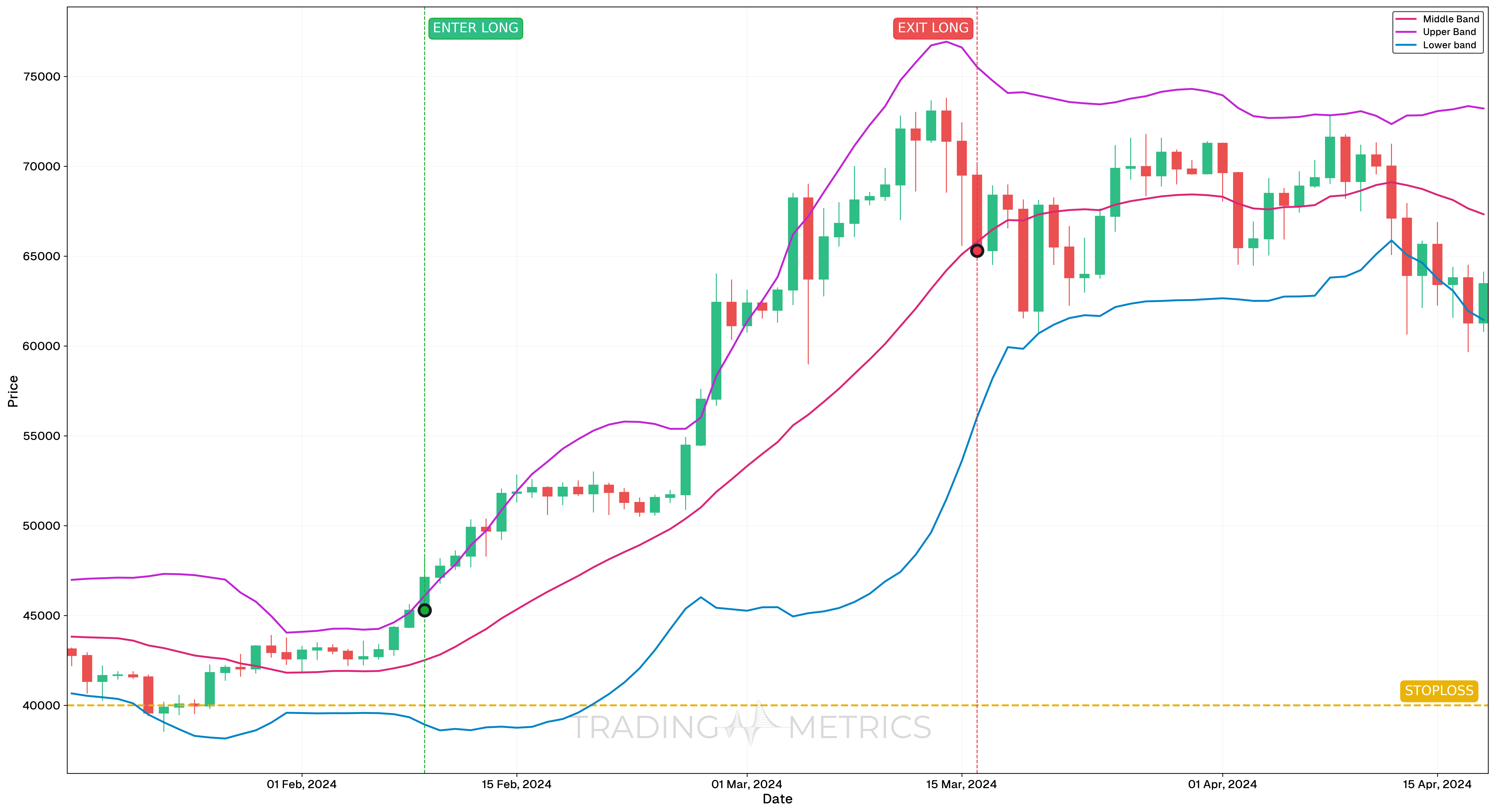 - Exit Strategy: Implementing a partial exit strategy near the middle band allows for capturing gains while maintaining exposure to further upside potential as the price approaches the upper Bollinger Band.