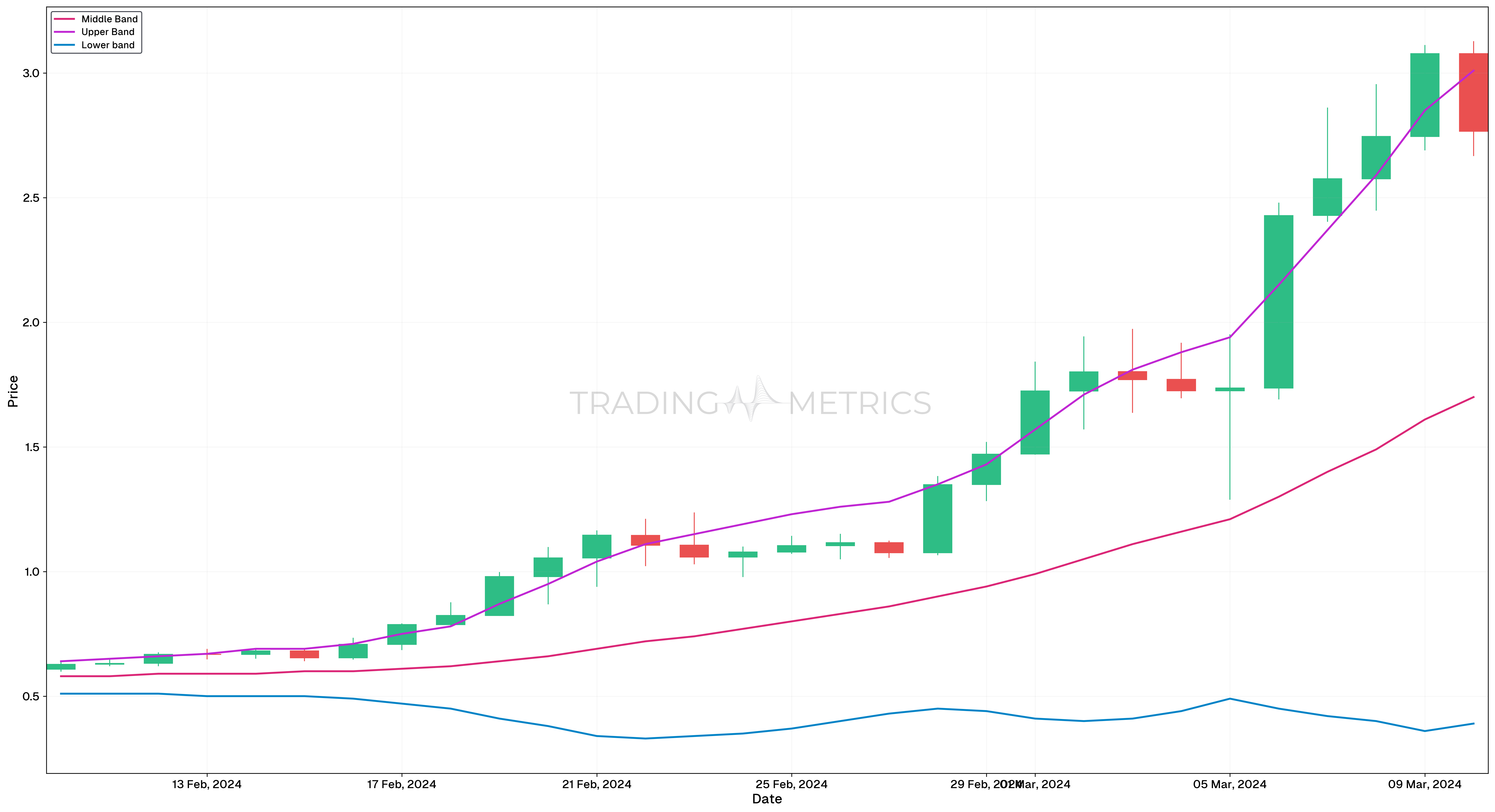 In this analysis, we will explore how Bollinger Band Squeeze can provide buy and sell signals based on the price movement and volatility of the asset. Specifically, we’ll analyze two key dates: the buy signal on February 8, 2024, and the sell signal on March 16, 2024.