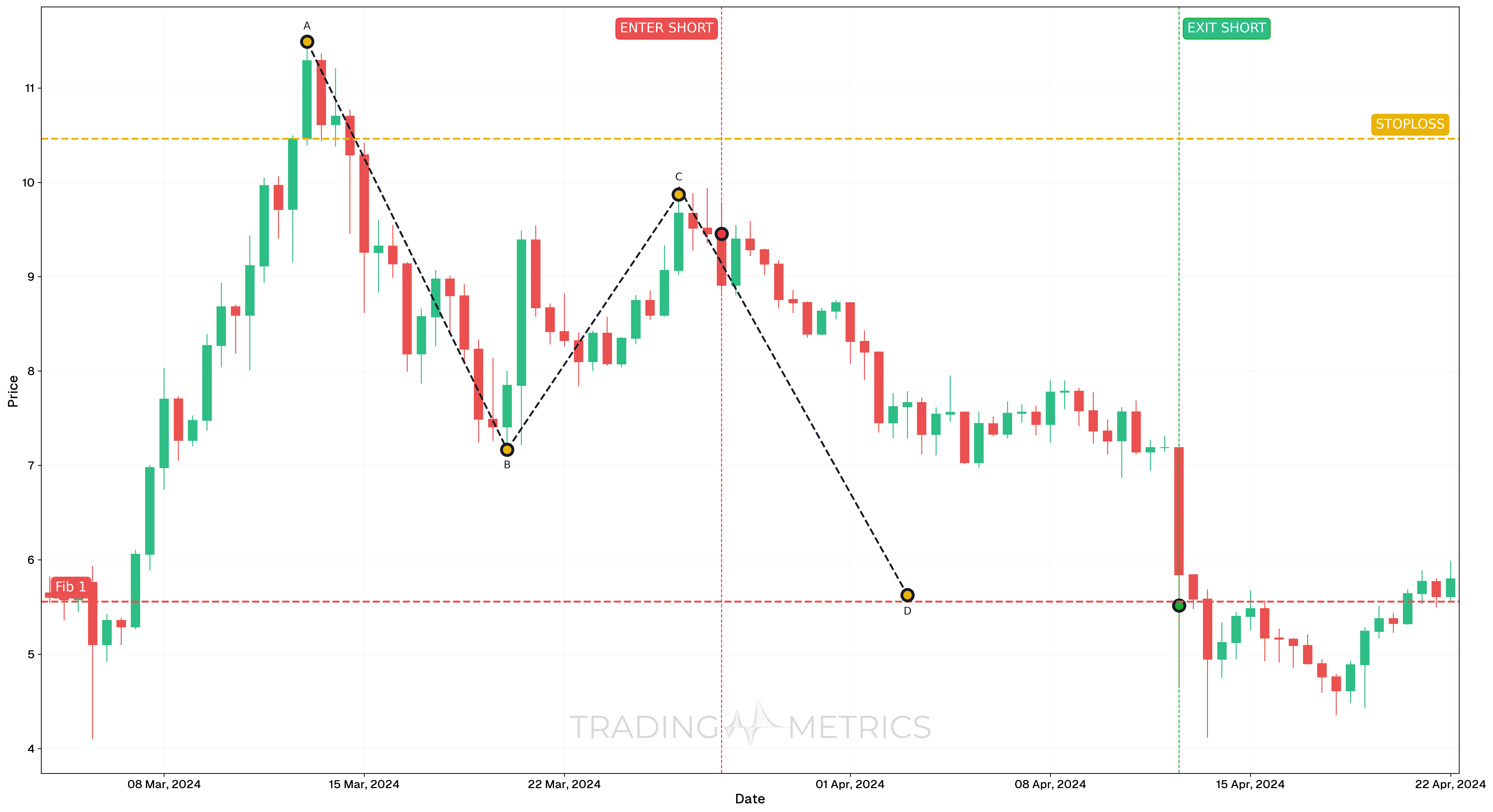Exit: The trade was exited on April 12, 2024, at $5.516, once the projected length of Wave A was fulfilled from Wave C, validating the Measured Move Down structure.